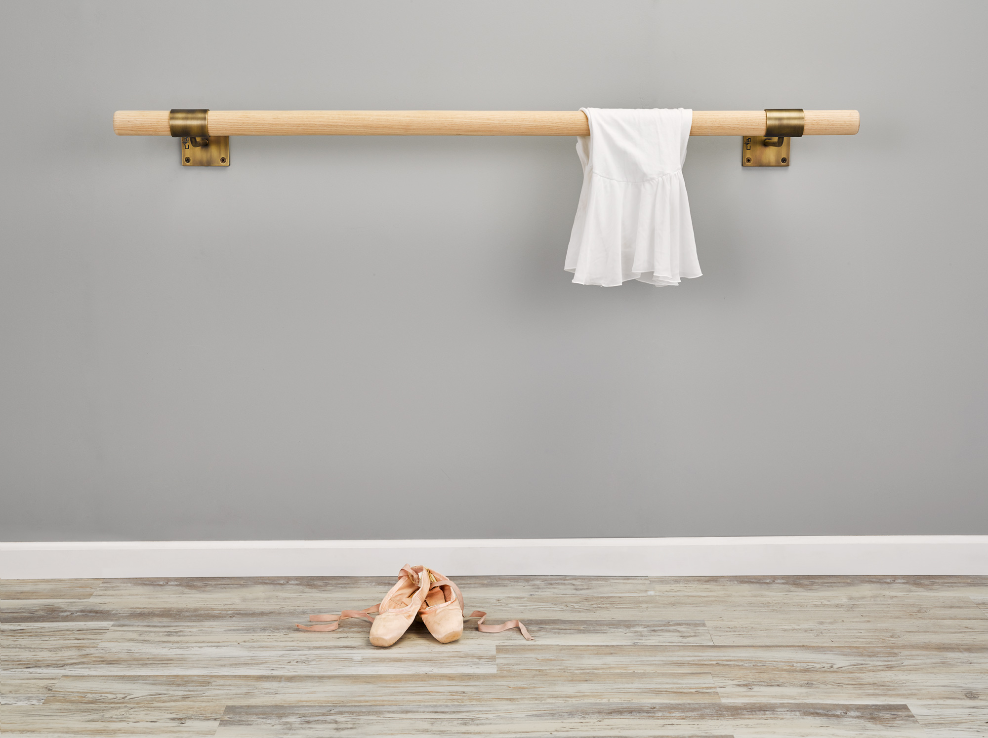 Strong yet simple, Custom Barres SISSONE single wall-mounted ballet barre bracket is a minimalist design favorite in dance & fitness for home and commercial studios. All necessary hardware is included for standard installation